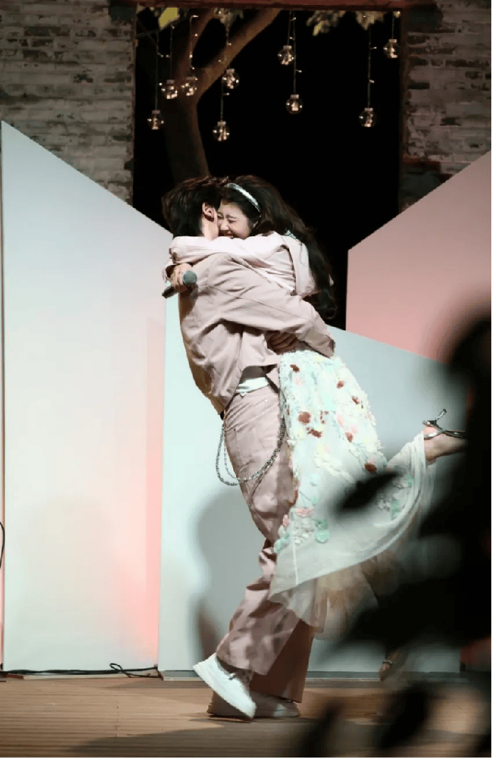 小草与小一,是本季撒糖最多的CP,他们参与了写词、舞台动作设计的全程共创。两人把暧昧期「擦肩而过又回头」的拉扯感编入舞台设计,在歌曲结束后兑现拥抱的约定,完成了从心动到确认的情感升级。